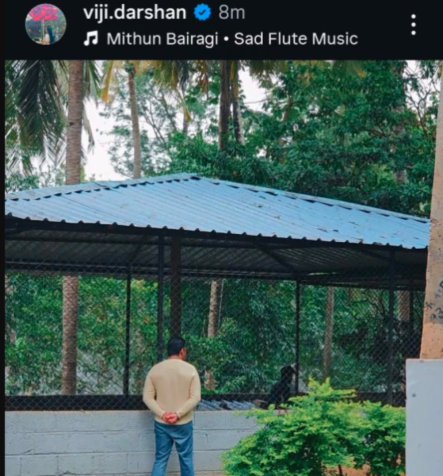 ಇನ್ನೂ ಸೋಶಿಯಲ್ ಮೀಡಿಯಾದಲ್ಲಿ ಆ್ಯಕ್ಷಿವ್ ಆಗಿರುವ ವಿಜಯಲಕ್ಷ್ಮಿ, ದರ್ಶನ್ ಜೈಲಿಗೆ ಸೇರಿದ ಬಳಿಕ ಮೊದಲ ಪೋಸ್ಟ್ ಶೇರ್ ಮಾಡಿದ್ದಾರೆ. ದರ್ಶನ್ ಫೋಟೋವನ್ನ ಹಂಚಿಕೊಂಡಿದ್ದು, ಈ ಫೋಟೋದಲ್ಲಿ ನಟ ದರ್ಶನ್ ಏಕಾಂಗಿಯಾಗಿ ನಿಂತಿದ್ದಾರೆ. ಇದಕ್ಕೆ ವಿಜಯಲಕ್ಷ್ಮಿ ಹಾರ್ಟ್ ಬ್ರೇಕ್ ಇಮೋಜಿ ಕೂಡ ಹಾಕಿದ್ದಾರೆ.
